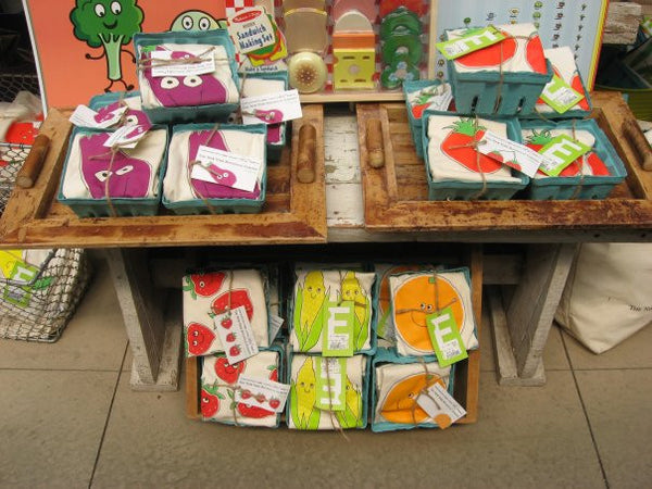 thanks to our good friends over at the New York Botanical Garden Shop in the Garden, Bugged Out has fruit and veggies, too! They asked our creator, Dina, to design a kid-friendly and whimsical line of fruits and veggies exclusively for their Edible Garden, a season-long series of events in 2009 and 2010
